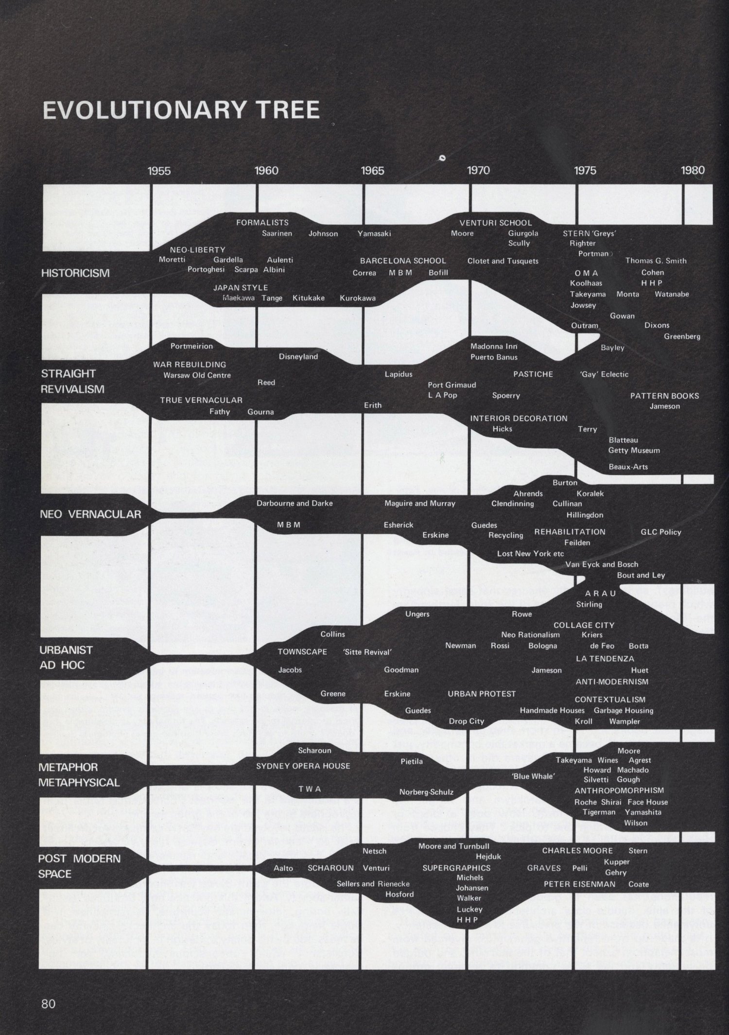 The Jencks Foundation’s first research theme takes the year 1980 as its starting point. In 1980 the first ever Venice Architecture Biennale entitled The Presence of the Past famously announced Post-Modernism as the international mainstream of architecture. It proposed a new canon that was to be more inclusive and polyphonic, and sought to embrace a diversity of narratives, a variety of styles, contradictions and irony. Charles Jencks’ contribution to the Biennale When ‘wasms became ‘isms set out to map the various streams and traditions of Post-Modern Architecture through exploring the edges, the eccentric, the bizarre and the outsider cultures of architecture beyond the mainstream. Yet despite these ideals, none of the case studies and architects presented at the Biennale went beyond the European and North-American context. Looking back – once again – in order to look forward, this research theme reconsiders the Post-Modern canon from the critical distance of 43 years to reinvigorate the pluralism suggested by the Biennale and Charles. ‘isms and ‘wasms: 1980 in parallax borrows the term ‘parallax’ from the field of photography and foregrounds the shifting perspectives of lesser studied contexts, cultural and geographical sites. It invites voices from diverse, multidisciplinary backgrounds to remap the year 1980, while reflecting on its legacies today. This new research theme is launched by a commission and exhibition by Raqs Media Collective, and further explored throughout the year by a set of newly commissioned essays and diagrams, digitised material from the Jencks Foundation archive, public debates and a symposium.