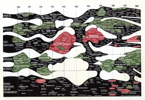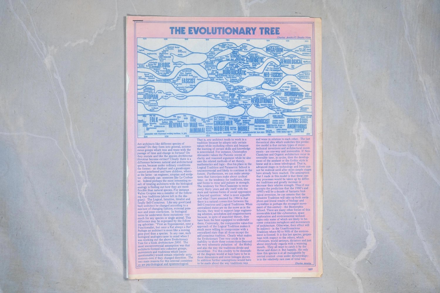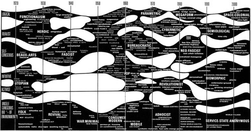Jencks studied the past in order to predict the future. But this exercise was not only analytical and predictive, it also had a moral dimension. As Jencks quoted from McLuhan: ‘There is absolutely no inevitability as long as there is a willingness to contemplate what is happening.’ Thus the diagram was as much a prediction as it was a provocation and a call to action.